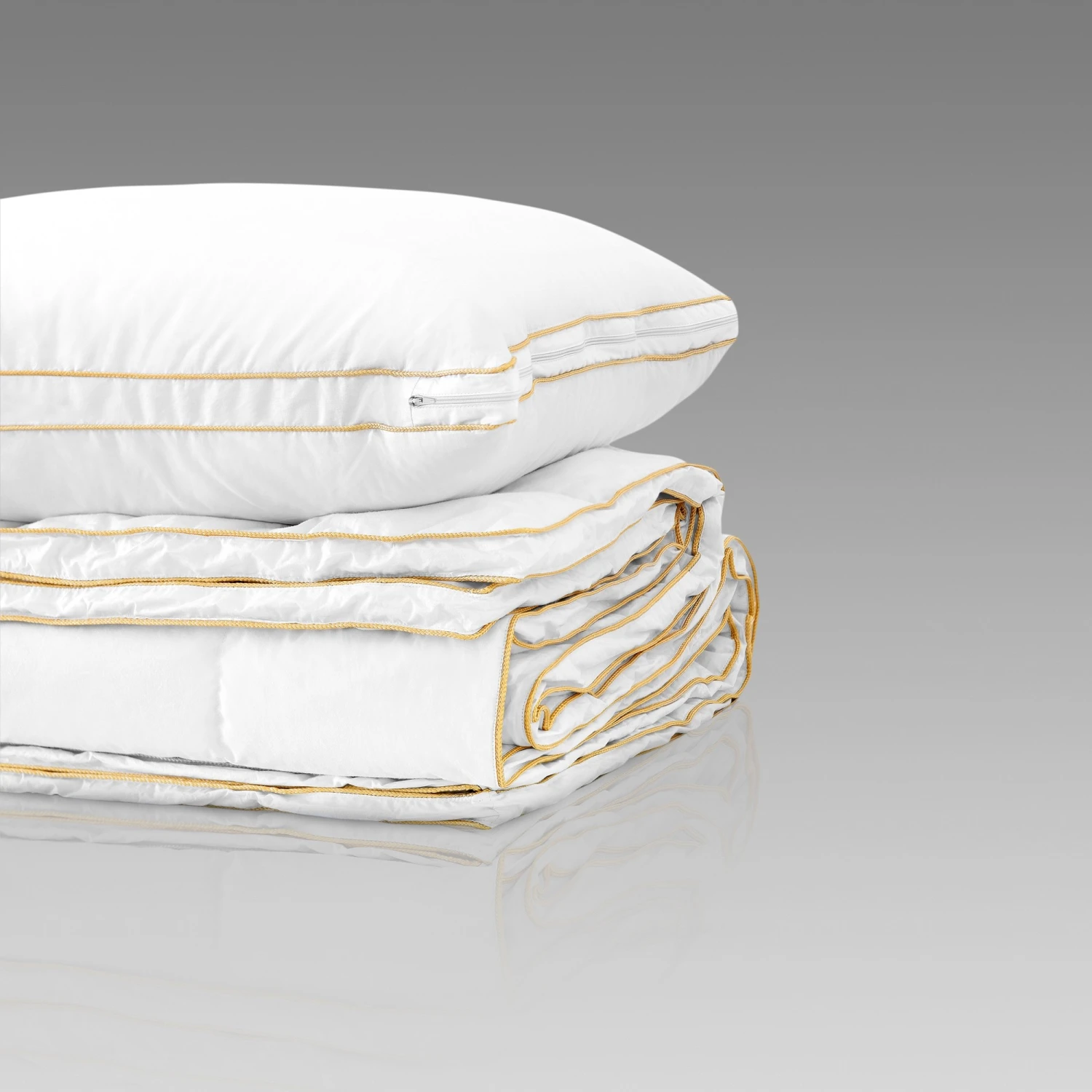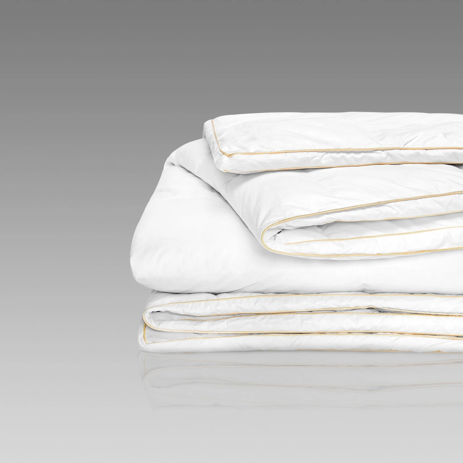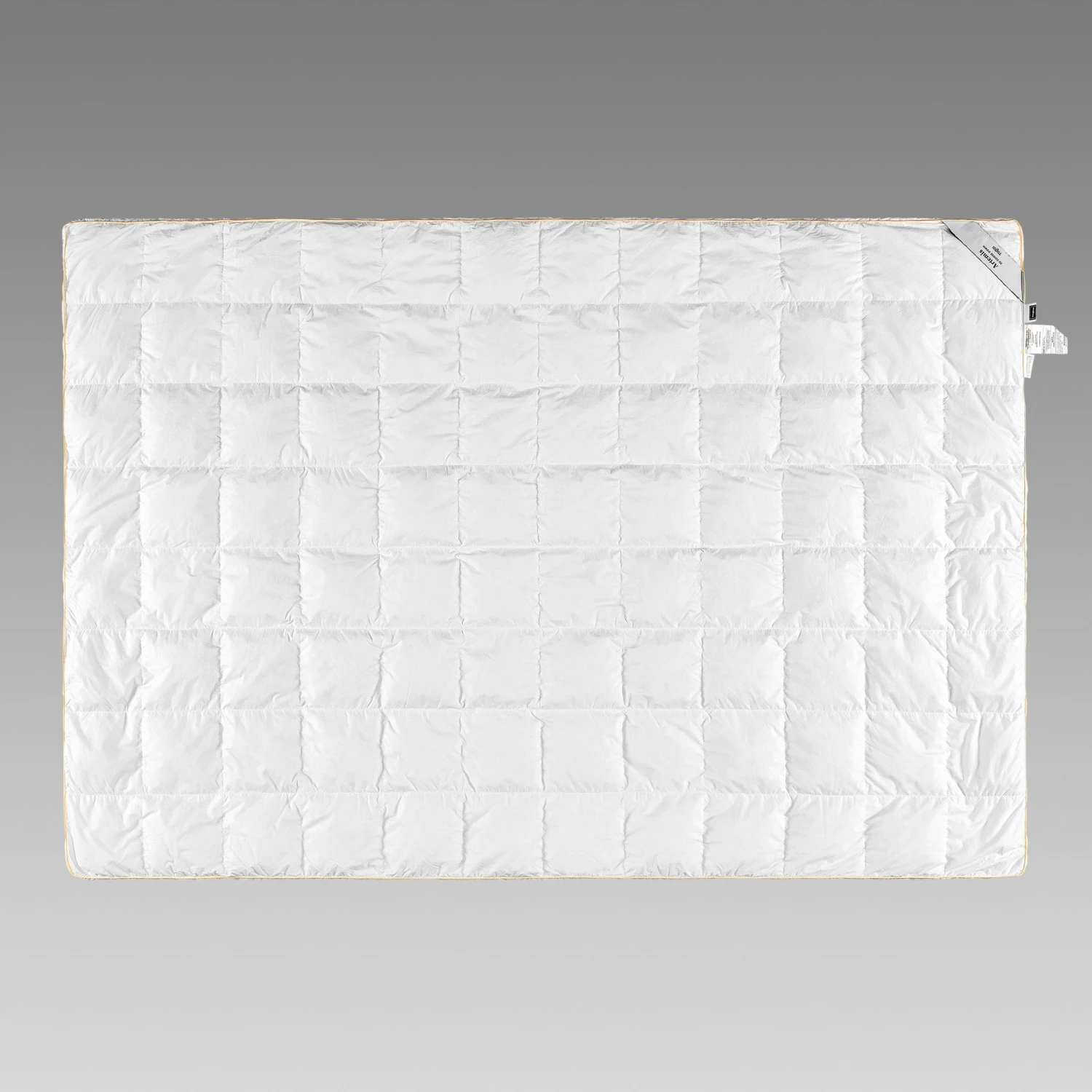 The best raw materials are selected for our products, including the northern breeds of geese down, which has a high degree of elasticity. It is thoroughly washed, sterilized, and disinfected. The Artemis has an insert made with fabric, that is sewn around the perimeter in a special way that allows the filler-down to “gain” air. The duvet insert becomes more lush and voluminous. Despite its lightness, splendor, and airiness, this duvet insert has excellent thermal insulation properties. The cover of the model is made of natural, especially durable cotton Batiste, which securely holds the fluff inside, ensuring a long service life of the product. The duvet insert ‘Artemis’ is recommended as a winter or all-season option.