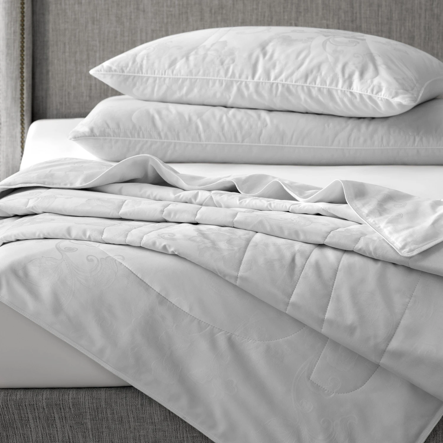 Being the thinnest fiber among vegetable fibers, Kapok is elastic, which allows it to restore its shape well. In addition, Kapok has high wear resistance, and its temperature-regulating properties are similar to natural silk. The collection and processing of this fiber are done manually, and the processing does not require the use of chemicals, which makes the product completely eco-friendly and safe. Natural Mulberry silk is the most durable natural fillers available. It has antibacterial properties, which makes tactile interaction with it good for your health. Mulberry is 97% protein, and contains 18 essential amino acids, including glycine which reduces stress levels. Being a natural thermoregulator, Mulberry silk quickly absorbs heat and maintains the same temperature regardless of environmental conditions, creating an optimal microclimate. The duvet insert ‘Harmony’ is made of 100% cotton of the original jacquard weave with a density of 300TC. The threads used in this dense and soft fabric are made only from long cotton fibers collected by hand, so the cover has a special strength and can withstand repeated washing.