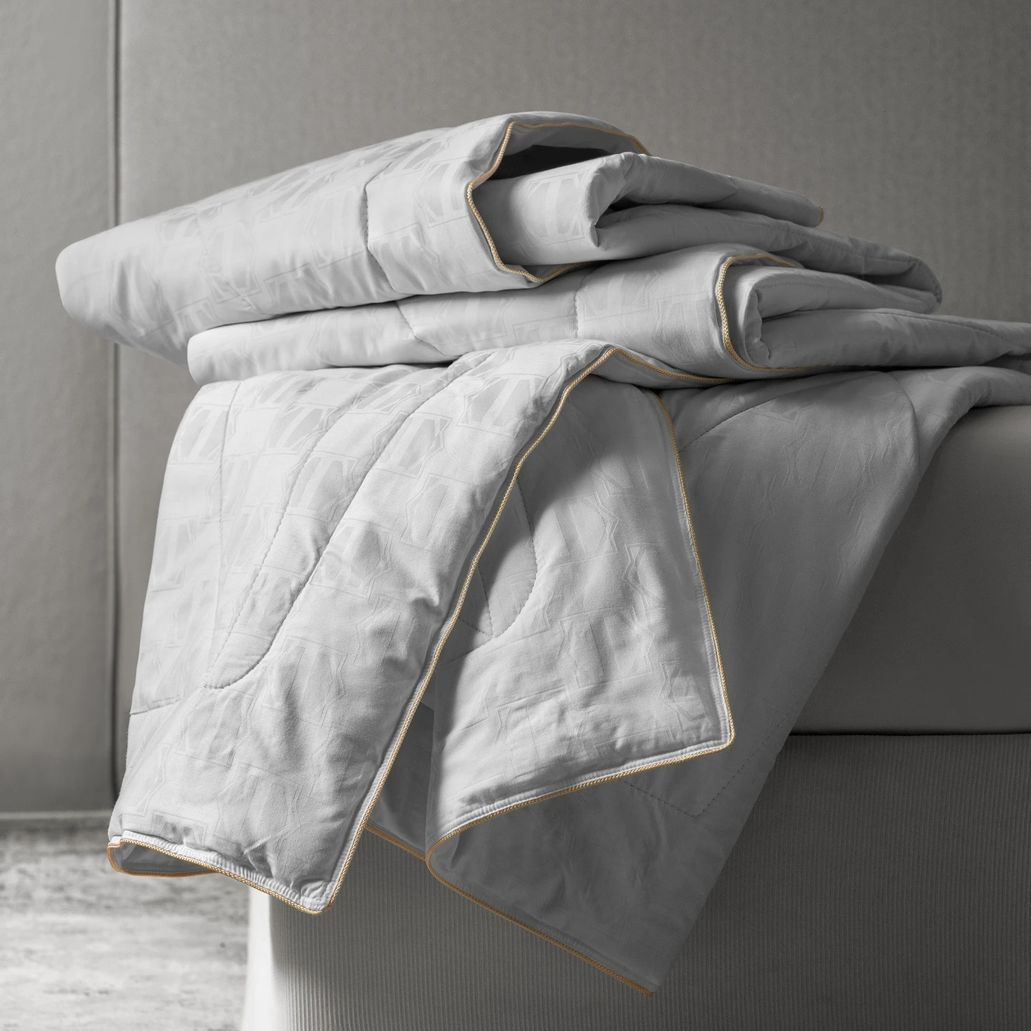 Camel’s hair is an excellent natural material that has high hygiene and hygroscopicity, and also provides a sleeping person with useful ‘dry heat’. Wool is very useful for health, sleep under such a blanket has a beneficial effect on the human body. Wool products can be used in winter and summer, and with proper care, they long retain their original appearance.The cover of this model is made of thick cotton jacquard, provides high wear resistance and long service life of the duvet insert. Around the perimeter of the duvet insert, there is a stitched edging with double stitching which lends strength and elasticity to the edges of the product. The quilt is quilted with a special anatomical stitch, patented by Togas.