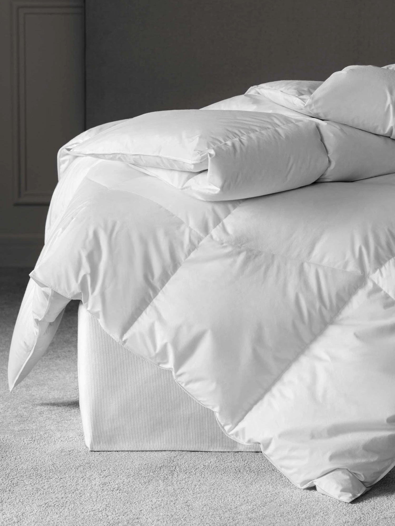 For our products we select the best raw materials – white fluff of Northern breeds of geese which is carefully washed, sterilized and disinfected. “Royal Grand” is a very warm, lush duvet insert that will keep you warm on the coldest nights. It is quilted with a special anatomical stitch, patented Togas, which makes sleep as comfortable as possible and allows you to enjoy the cozy warmth of goose down. This stitch securely holds the fluff inside of the product. It does not deform, which increases the service life of the duvet insert. The fabric of the cover is snow-white, high-density, light, strong and durable Royal Batiste.