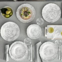 The dessert plate can also be combined with other porcelain items from Martinelli Amour, Martinelli Natur and Martinelli Fleurs collections where the tableware is decorated with similar motives – flowers and landscapes made in Toile de Jouy style. Each family member can choose the preferred ornament and create their own set of plates. However, every item of these collections will complement each other, emphasizing the elegance of the French style.