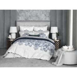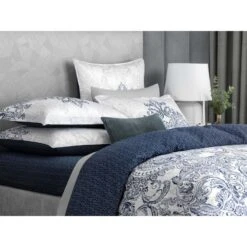 The set is double-sided. An original addition to the classic pattern is a spectacular diamond-shaped geometric print in the same rich blue tones.