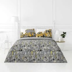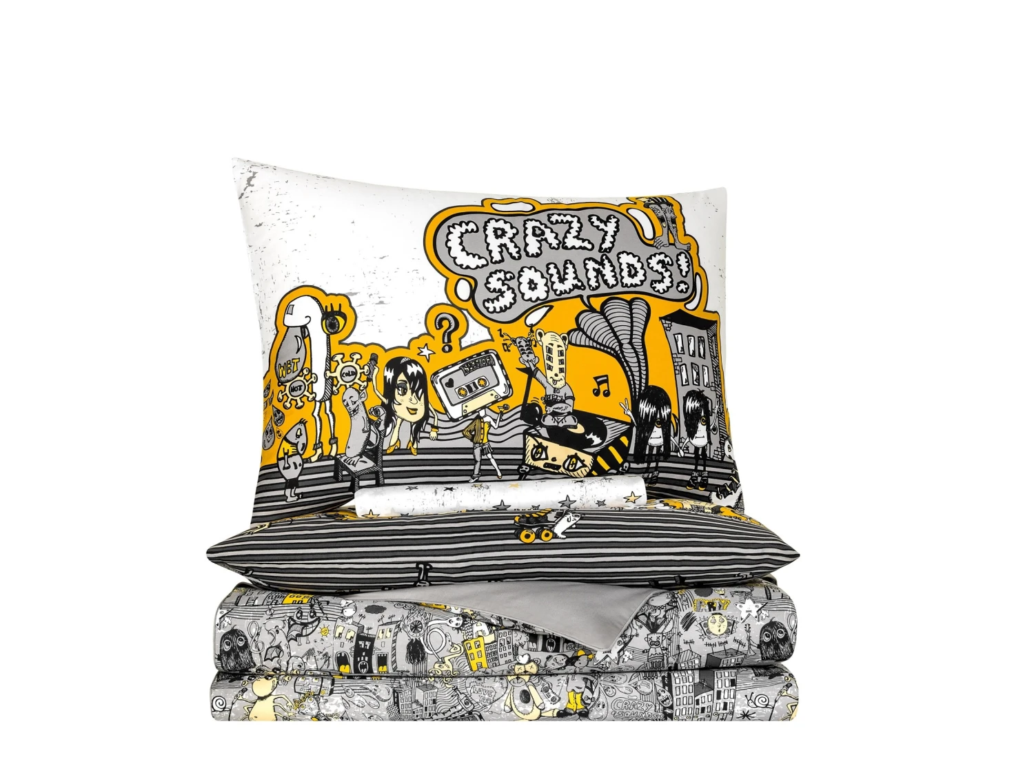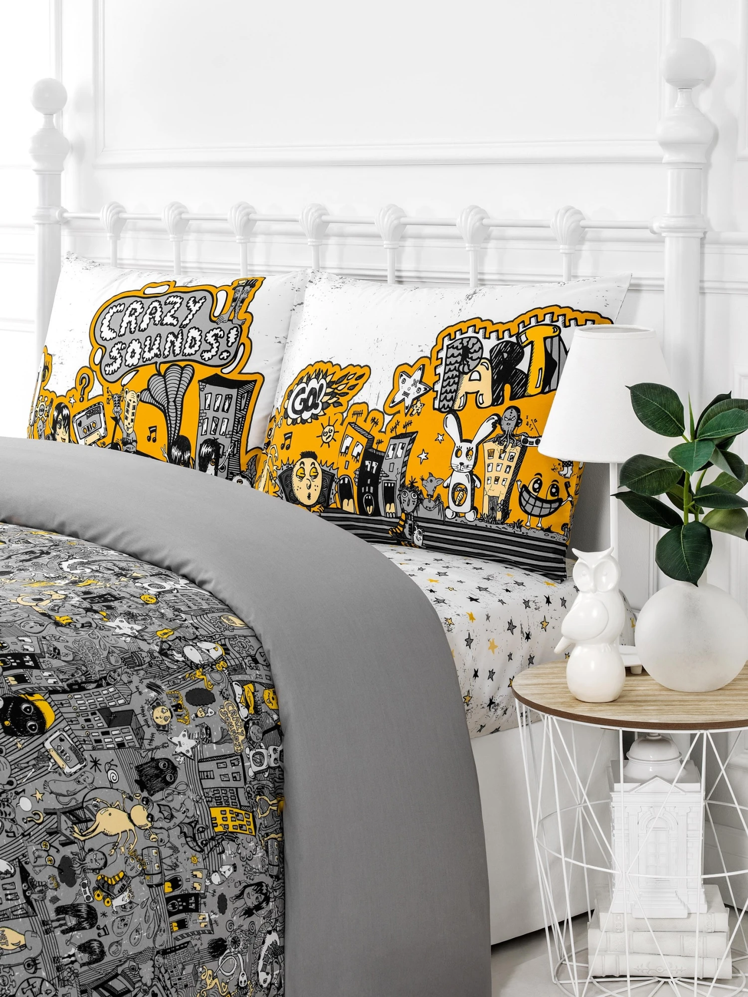 The designers were inspired to create a set of ‘Funky’ street art graffiti and a variety of comics. The drawing is made in the style of monochrome graphics, reminiscent of the black and white pencil sketch with grayscale and interspersed with bright yellow. This is an unusual, stylish color combination, corresponding to the latest trends in design. Bed linen ‘Funky’ is made of durable and dense cotton-satin, very beautiful, pleasant to the touch fabric with a silky sheen. With proper use, this linen retains the saturation and brightness of colors, even after numerous washings