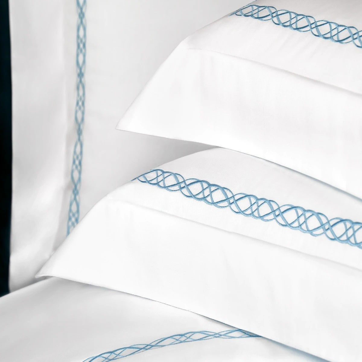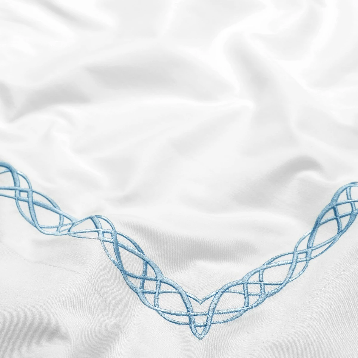 The white color is considered a symbol of harmony, happiness, and purity. The snow-white bedding set ‘MIA’ is decorated with fine elegant embroidery of chocolate color. This is aristocracy and luxury, style, worthy of the royal chambers. The delicate ornate embroidered pattern frames the decorative borders on the pillowcases and the top of the duvet cover, creating an aura of subtle elegance.