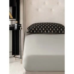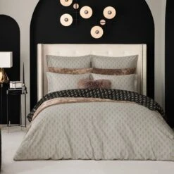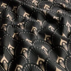 The strict and stylish gold ornament on black fabric is a reference to the luxurious Art Deco era with its geometry of lines and shapes. The characteristic colors of this style and three main colors of this set are gold, black, and silver, which contrast effectively with each other.