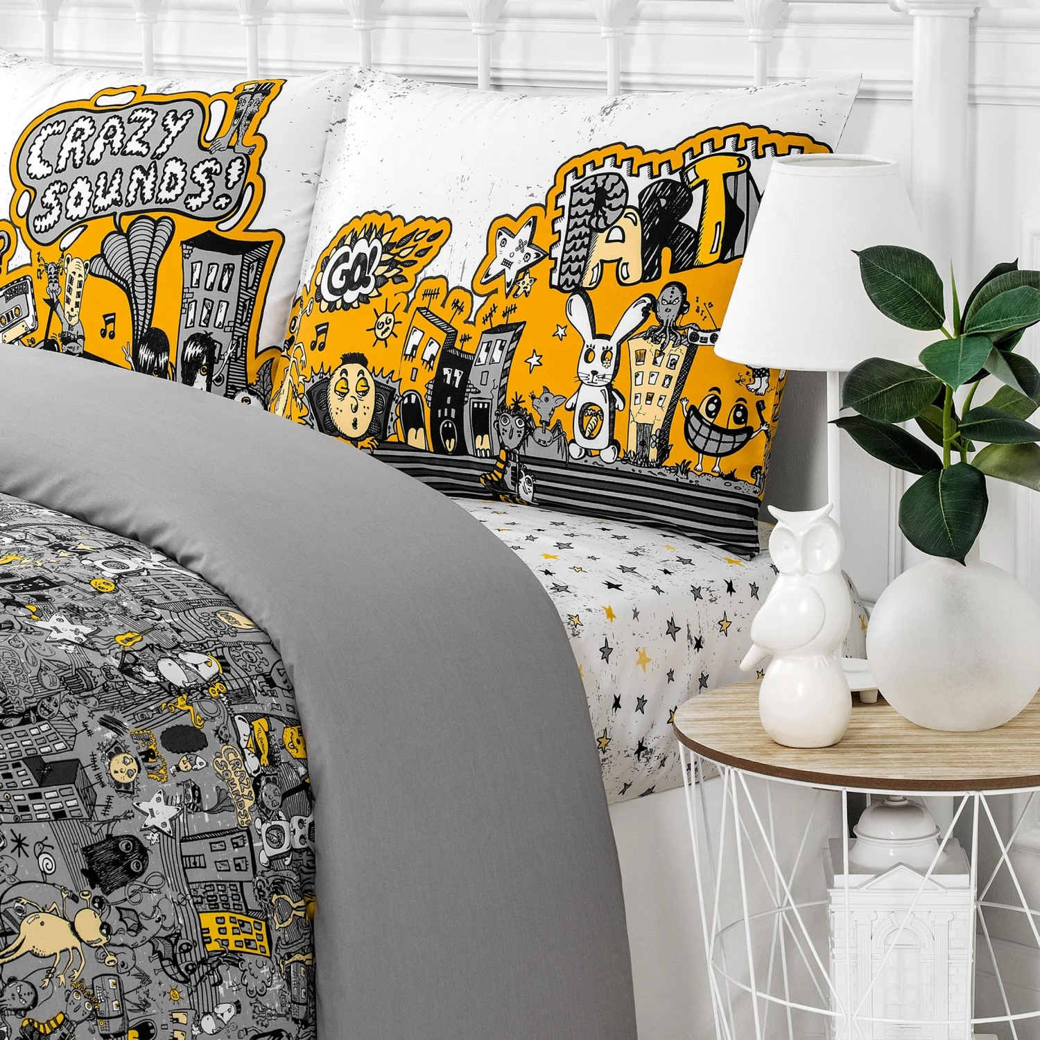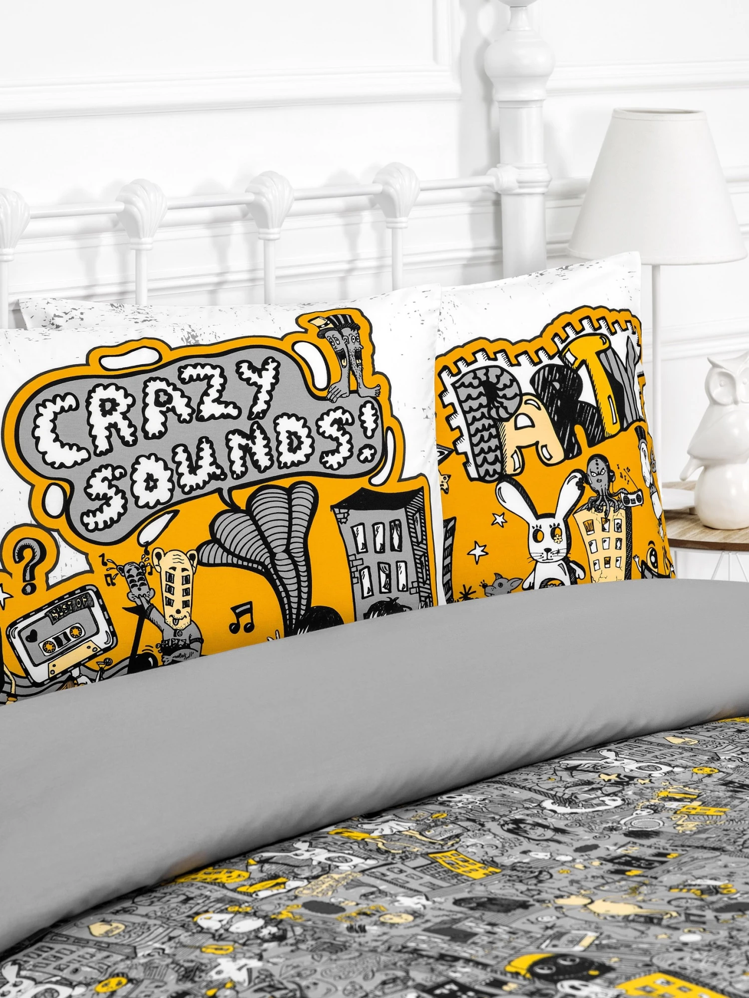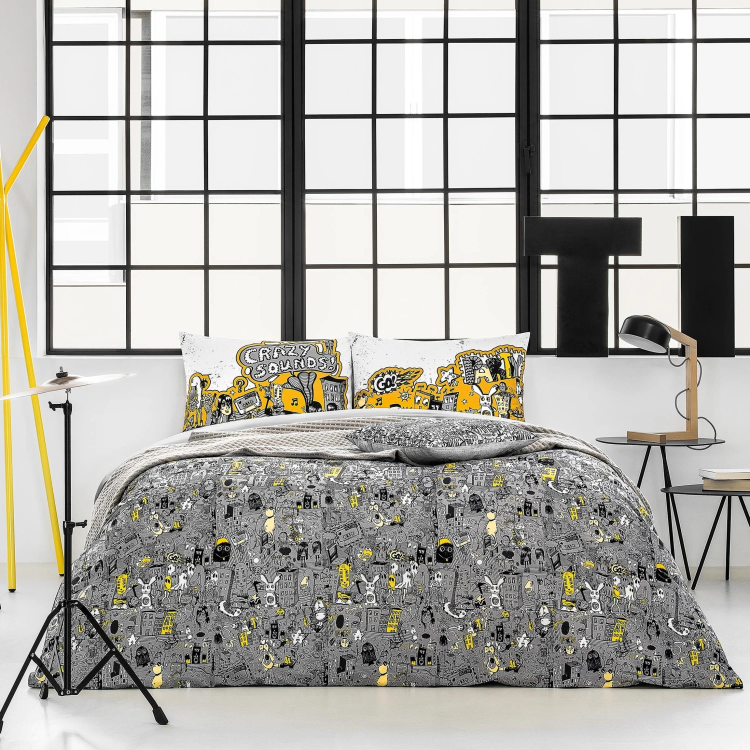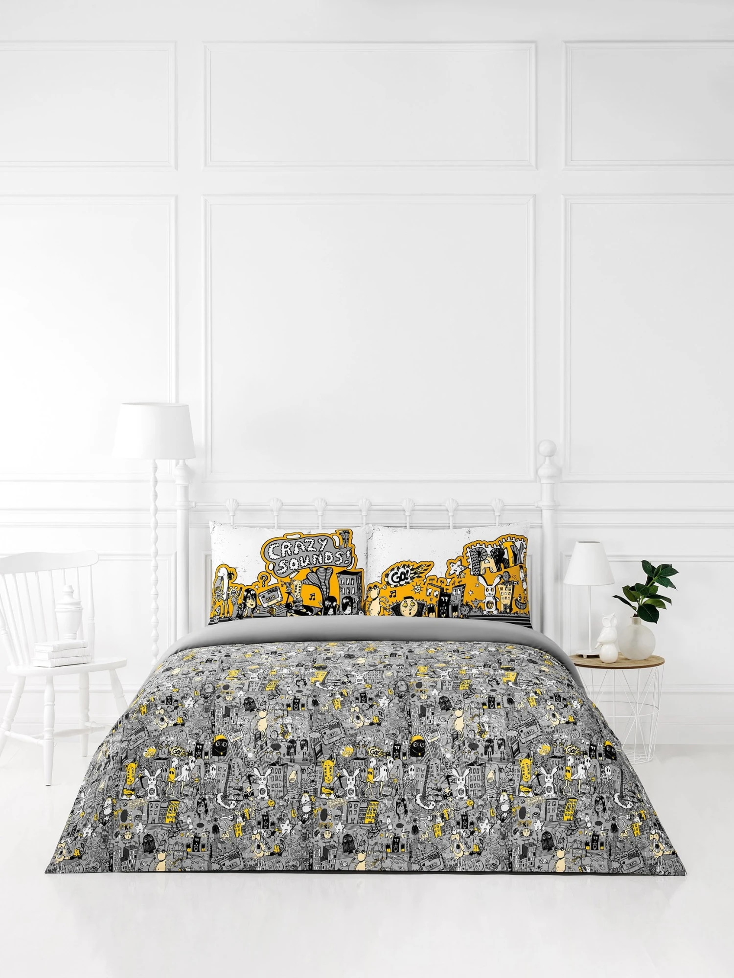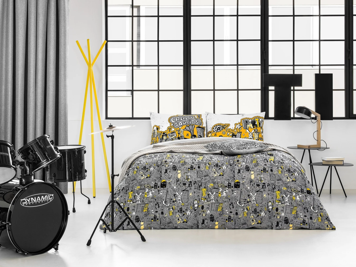 The designers were inspired to create a set of ‘Funky’ street art graffiti and a variety of comics. The drawing is made in the style of monochrome graphics, reminiscent of the black and white pencil sketch with grayscale and interspersed with bright yellow. This is an unusual, stylish color combination, corresponding to the latest trends in design. Bed linen ‘Funky’ is made of durable and dense cotton-satin, very beautiful, pleasant to the touch fabric with a silky sheen. With proper use, this linen retains the saturation and brightness of colors, even after numerous washings