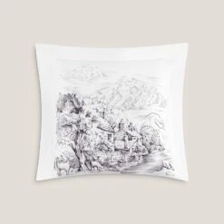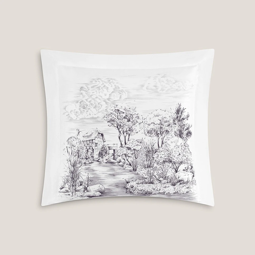 The pillowcase is decorated with monochrome Toile de Jouy ornament. This famous classic pastoral-themed print appeared in 18th century France and immediately became a hit. The fine lines of the landscape in black shades look as if written on a paper with a feather and Indian ink. The pillowcase is double-sided – one view is replaced by another, equally beautiful one. The sophistication and elegance of this linen makes it the perfect addition not only to a classic setting; the charming Toile de Jouy will adorn any interior.