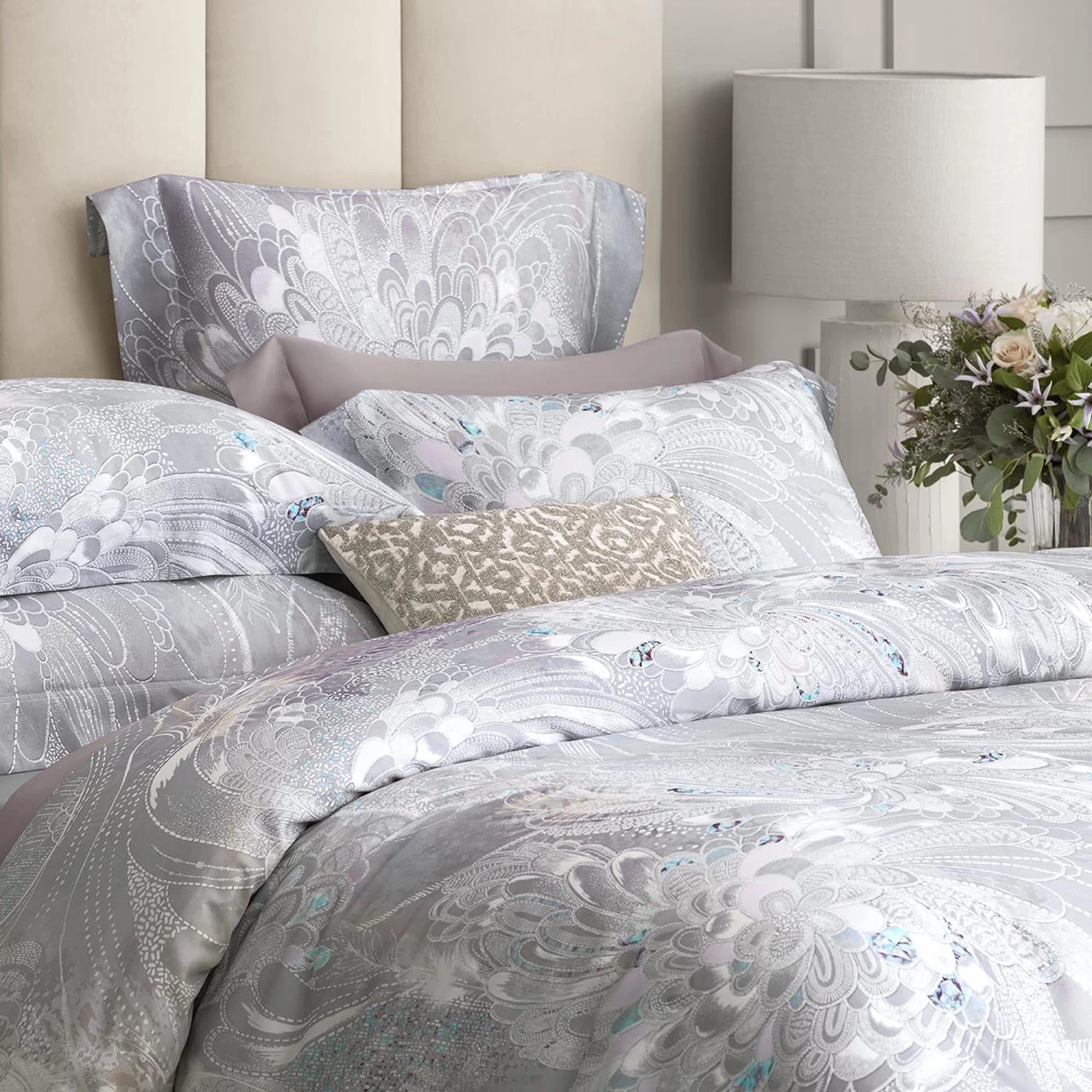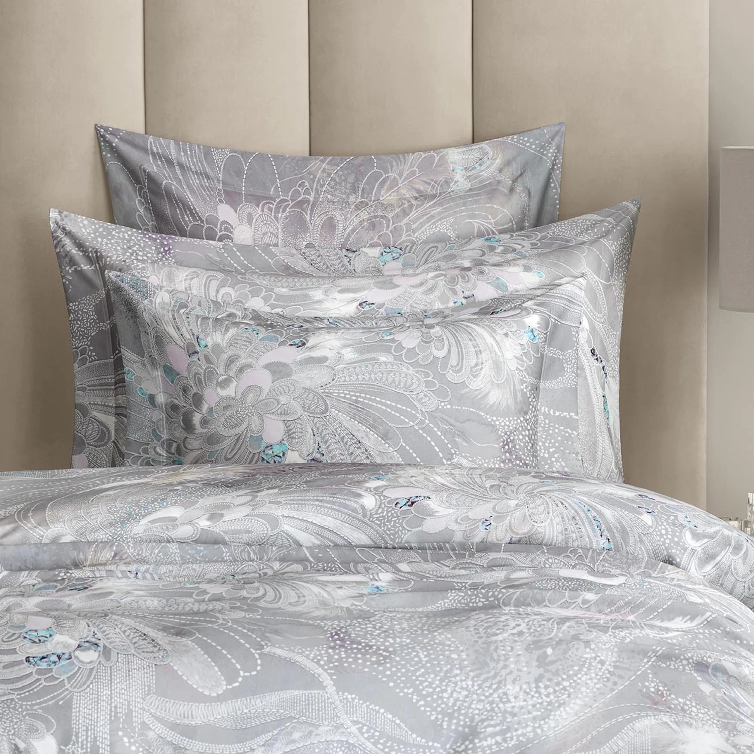 The Perla fabric shows off some pearl shades: from radiant iridescent mother-of-pearl to the rare tones of silver and pink pearls. It seems as if the unusual pattern has come out of daydreams – the beautiful plumage of mysterious birds, the exotic lines of mythical flowers, the shining facets of precious stones – it all seems to be mixed up in a transcendental haze of dreams.