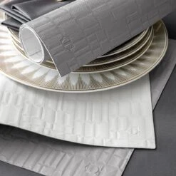 This stand is reversible, which allows you to change the design and color scheme of the table and the interior of the kitchen as a whole, depending on which side is used. One side of the placement is a noble ash gray tone that will add elegance to a dining room or kitchen. The silvery-gray palette is a great solution for a room decorated in cold colors. The second is the universal white color. Thanks to the embossed geometric ornamentation with 3D effect, these coasters look stylish and will become a decoration of the table.
