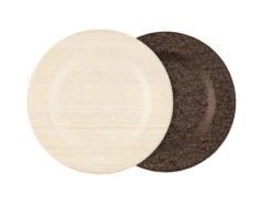 A special recess under the plate on such a stand not only looks interesting but also practical to use, as it additionally fixes the dishes on the table. The surface of this beautiful model of chocolate color resembles textured fabric. The polyurethane product is easy to clean and easy to care for.