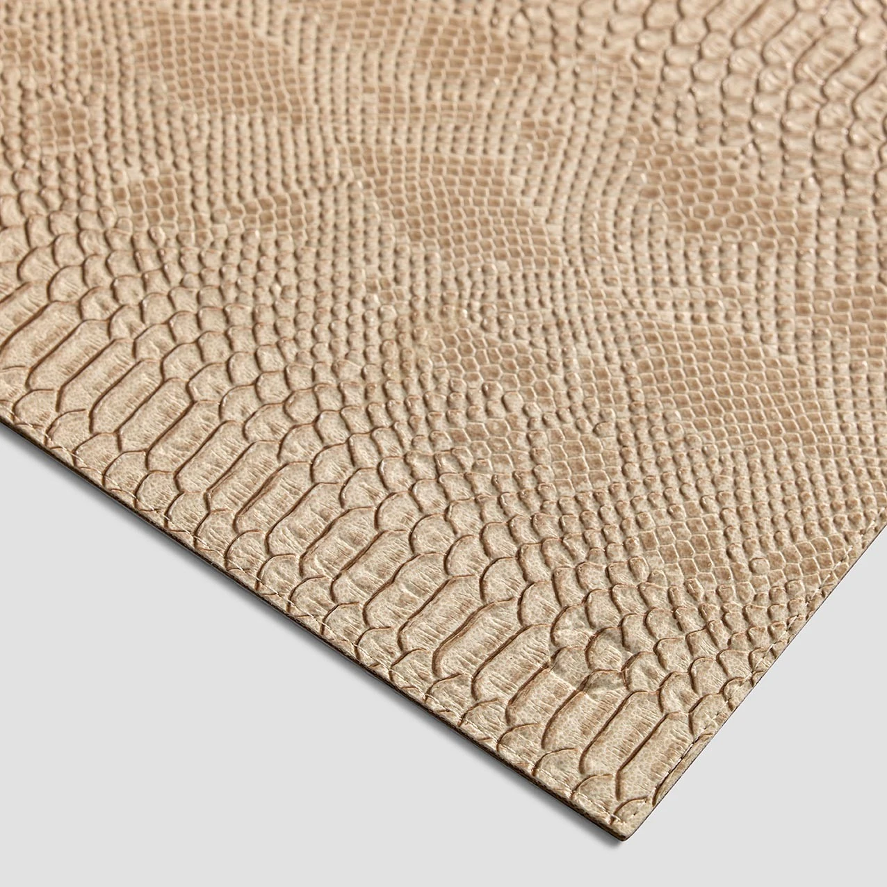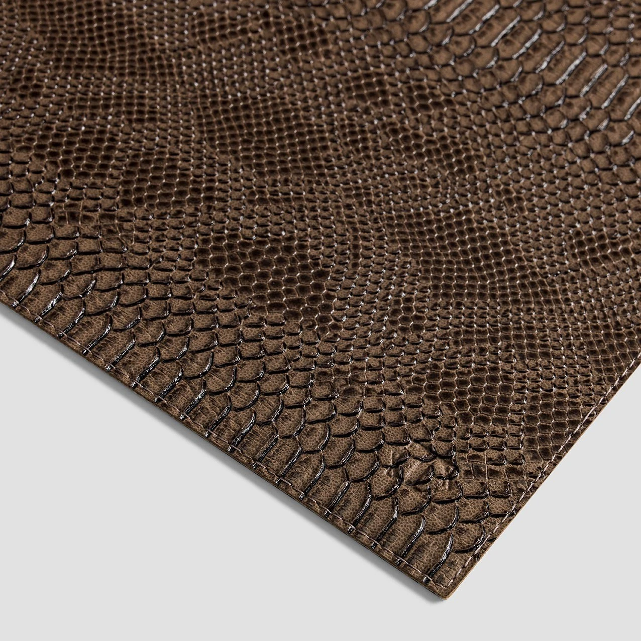 The placemat looks luxurious and catches the eye with its texture, which reproduces the relief as well as the shades of the snakeskin pattern. Snake pattern of Selisa looks unconventional, bold, stylish and will adorn the festive table. Beautiful chocolate-gold palette of the double-sided placemat will complement the classic and modern look, and a posh pattern of shiny snakeskin will accentuate the style, luxury and gloss of Art Deco interiors.
