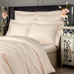 Palmetto was widely used in the days of the Egyptian pharaohs, later in ancient culture, it is one of the iconic ornaments of the Art Deco era. The set is decorated with decorative borders of smooth satin silk around the perimeter of the pillowcases and the front of the duvet cover, made of the same fabric and sheet, silky and very pleasant to the touch. Bed linen is made of long-fiber cotton of the highest quality, which ensures high hygiene and durability. The exquisite jacquard model combined with elegant art Deco ornament is the style and elegance of the bedroom interior.