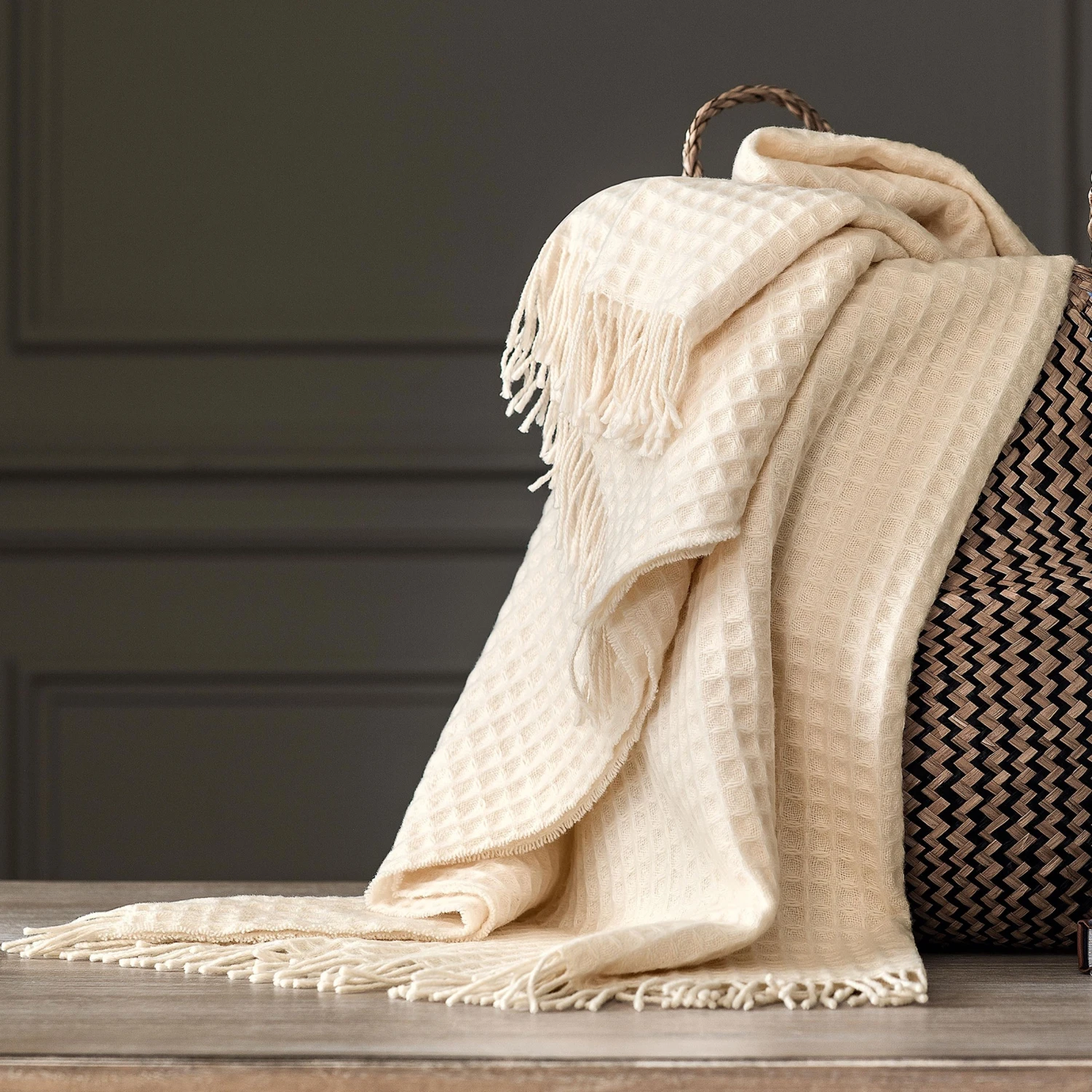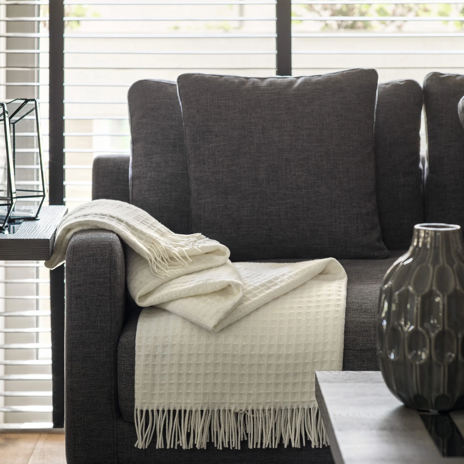 In its softness, Merino wool is superior to silk. It is pleasant to touch the relief textured matter of waffle weaving with your hand, the throw looks very cozy. ‘Rialto’ will add softness and home warmth to any interior.